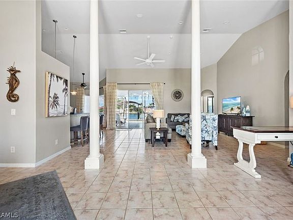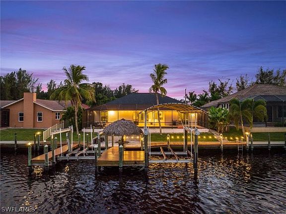 (Minimal damage from storm no flooding) Welcome to paradise! This beautiful four bedroom two bathroom DIRECT GULF ACCESS pool home is ready for new owners. Located in the SW Cape within minutes to Matlacha Pine Island by boat or car. The home has a refreshing atmosphere when you step inside. Large family room living room with built in Bose surround sound and a separate dining area. The kitchen comes fully equipped with stainless steel appliances, granite counter tops , kitchen island and plenty of counter space for cooking and entertaining. Master bedroom boasts dual walk in closets a large bathroom with jacuzzi tub, Separate shower and dual sinks. Walk out to your beautiful patio area salt water pool from the living room or master bedroom. This home is a boaters dream, sitting on the Massey Canal Basin with easy access to Matlacha Pass Pine Island Sound. The home has a 15, 000lb boat lift with canopy and a 10, 000lb boat life with captains walk. The home is equipped with new hurricane safety features. Easy walk or bike ride to Joe Stonis Park that has picnic area, tennis courts, pickle ball, and a playground. This home is also minutes away from grocery restaurants and shopping.