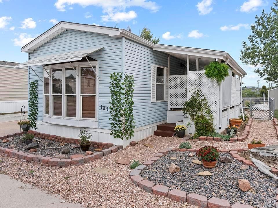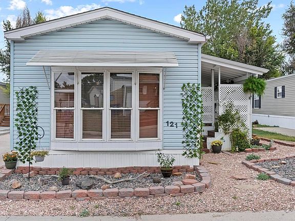 Lot 121. Back On Market Again Due To Buyer Financial Situation, No Fault To Seller Or In Regards To The Home! This Well maintained newly updated mobile home in the 55+ Holiday Village Community. This is Private Resort Style Living, For Active Adults In Colorful Colorado. There Is A Greenway, Community Center, Pool, Hot Tub, Fitness Center, Pool Table And RV Storage Available. Minutes Away From I25, Military Bases, Downtown, Shopping, Restaurants, And The ROCKIES! The Home Is Freshly Painted And Equipped With Wood Blinds Throughout. The Living Room And Open Concept Kitchen Feature Vaulted Ceilings. The Kitchen Is Equipped With An Island, Pantry, Microwave, And A Walkout To The Private And Peaceful Covered Wood Deck That Backs Open Space. The Large Primary Bedroom Has A Walk-In Closet And Features French Doors To The Adjoining Primary Bathroom. The Mudroom Offers Extra Storage And Covered Space To Get Out Of The Elements. A Sweet Patio Area Out The Back Door Leads To Ample Storage And A Finished Workshop/Garden Area/Shed! The Home Also Includes A/C, A Washer & Dryer, Microwave And A Newer Roof. Xeriscaped Front Yard For Easy Maintenance! Come See This Sweet And Private Oasis In This Wonderful Community. Many Activities And Opportunities For Residents! This Is Considered PERSONAL PROPERTY And Title Will Be Transferred At The DMV. The Lender For Manufactured Homes In A Park Is 21st Mortgage.