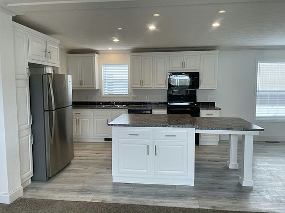 55+ age qualified community. This brand new 2023 model 3 bedroom, 2 bath has a large kitchen island, open floor plan and spacious living room - perfect for entertaining! Plushly carpeted bedrooms and a master bedroom with ensuite bath gives you plenty of space to unwind, while the vinyl flooring in the kitchen, baths and entries helps make clean up a snap! Separate laundry room offer the ease and convenience of doing your laundry at home.