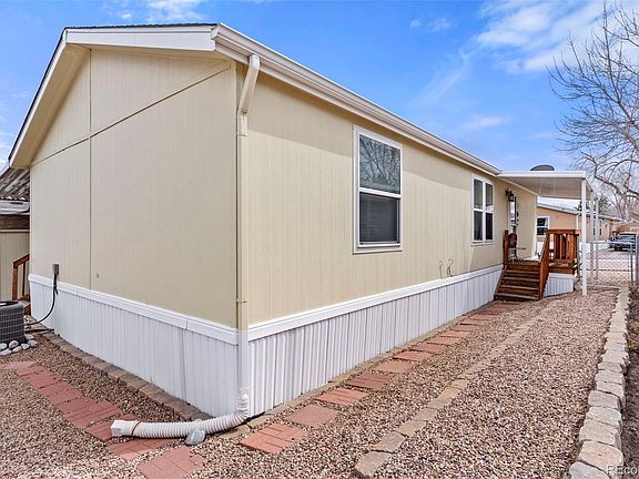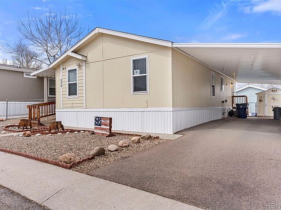 Located in Holiday Village, an age approved community (55+) this home boasts an open bright floor plan. As you approach the front door there is a ramp to make easy access for handicapped, however, it can be easily removed. There are three very good sized bedrooms all with large closet space, separate dining area off the kitchen is large enough to accomodate your dining table/buffet. The mudroom/laundry room is there as you enter through the back door. All the interior walls are textured, it does not look like your typical manufactured homes' interior. The paved driveway is large enough to park up to three cars under the carport. The lot has a fenced in area for your pets, easy to manage xeriscape, and a shed for additional storage space. More specifics on Holiday Village amenities include a recreation center, clubhouse, workout center, pool, RV storage, onsight management and many activities for the residents. We have a lender to help financing!! 21st Mortgage is the lender.