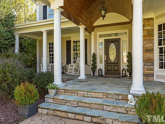 Custom built home, formerly in Parade of Homes sits on over an acre lot in Greythorne neighborhood of Raleigh. Eat in Kitchen w/recently refinished hrdwds, Carrera marble, 42" soft close cabinets, wine fridge, blt in double oven, large island, & pantry. 1st flr. Laundry w/utility sink & cabinets. Gas log fireplace in FR. Updated lighting throughout. Wrought iron spindles. 1st flr. Guest Rm w/full bath. Office. Formal DR. Mstr. w/sitting area. Surround sound in Bonus. Screened porch & patios.