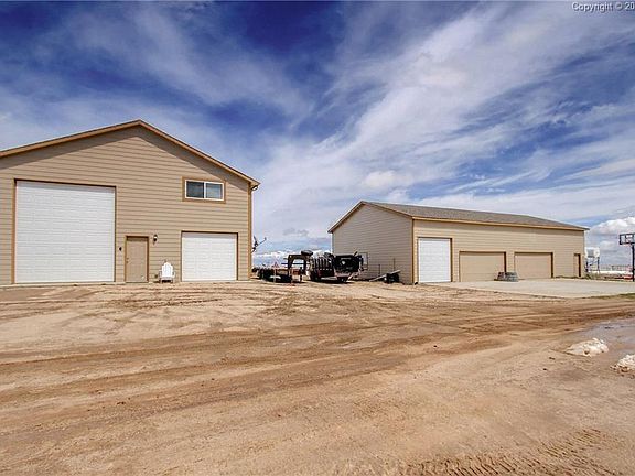Wonderful ranch on 80+acres 22 miles east of Falcon all on paved road. 5500+ sf custom, custom home with 2 amazing outbuildings of 42x56 and 30x50 to hold all your toys, plus a Growing Spaces 26' Grow Dome, plus 1800 sf w/office & luxury apartment. Located on open range, fenced & ready for horses and cattle. Home has 5 bedrooms, 6 baths, all of the secondary bedrooms are jr. suites. Formal dining, main level office, hardwood, so many custom accents & touches. This is worth the drive for the true buyer who wants to get away from it all in luxury. As you walk in the home with huge windows, 2 stone fireplaces, upgrades are everywhere. Basement has PLENTY of storage! Huge room sizes along with Pikes Peak views make this home perfect for the country buyer. Landscaped with pond, lots of storage, horse friendly, RV parking. Also great for hobbyist also. Roof is Class 4 Fire Rated Shingles. Home has 2 furnaces and 2 hot water heaters and the exterior is Cement Board Siding. Home also has Central Air Conditioning! Fun to show!!!