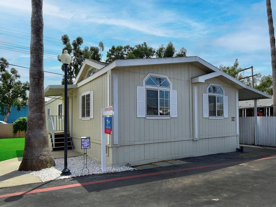 Welcome to your dream home! Nestled in the serene Beachwood Village Mobilehome Park, this meticulously remodeled 1999 Champion Manufactured Home offers modern comforts and stylish living in a friendly community. Land lease$2,095 **Key Features:** - **Spacious Open Floor Plan:** Enjoy the airy and bright open-concept living area perfect for entertaining guests and spending quality time with family. - **Gourmet Kitchen:** The kitchen boasts stainless steel appliances, elegant butcher block countertops, new stainless sink and ample cabinet space. - **Luxurious Master Suite:** Relax in your private master suite that has been tastefully updated with contemporary fixtures and finishes. - **Comfortable Bedrooms:** Two additional generously sized bedrooms with large closets, perfect for family members or guests. - **Modern Bathrooms:** Each bathroom has been tastefully updated with contemporary fixtures and finishes. - **Premium Flooring:** Enjoy the durability and beauty of new floors throughout the home. - **Energy-Efficient Upgrades:** Benefit from energy-efficient windows and LED lights. - **Outdoor Oasis:** Step outside to a beautifully landscaped yard with a private patio area, ideal for outdoor dining, gardening, or simply relaxing. - **Ample Parking:** The home includes a convenient covered carport. - **Community Amenities:** Beachwood Village Mobilehome Park offers a range of amenities, including a clubhouse, swimming pool, and well-maintained common areas. This home is move-in ready and offers a perfect blend of modern living and community charm. Don't miss out on this exceptional opportunity to own a beautifully remodeled manufactured home in the sought-after Beachwood Village Mobilehome Park. Experience the best of mobile home living in a beautiful, updated setting. Your dream home awaits! Serial # 099965210542 A/ B
