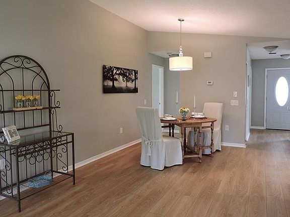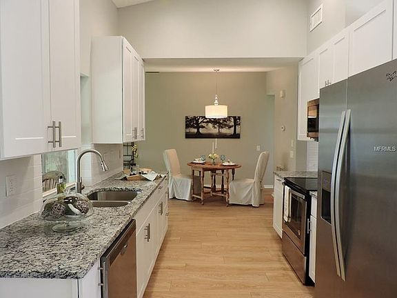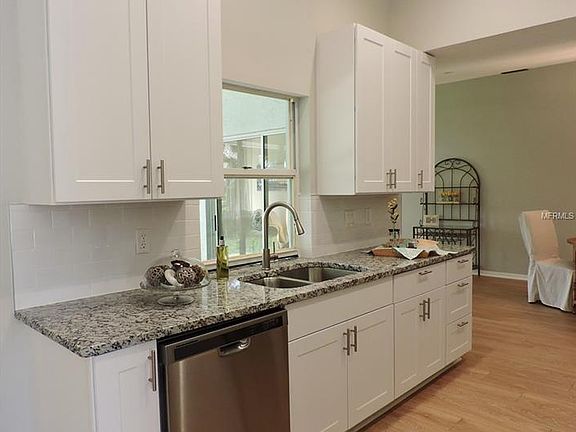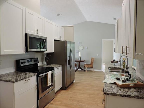 Gorgeous remodeled home in desirable Village West! This home features 4 bedrooms, 2 baths, and a large 2 car garage. 1800 square feet under air with upgrades galore! BRAND NEW flooring throughout, 42 inch shaker style cabinets, beautiful granite counter tops, fresh interior and exterior paint, updated lighting, new bathroom vanities and shower tile, stainless steel appliances, HVAC system, and much more. Sliding glass doors open from from both the living room and the family room to provide convenient access to the fully screened/covered lanai. Both bathrooms have been completely updated with new flooring, shower tile, and vanities. This gorgeous home offers dramatic vaulted ceilings throughout, large windows, and is flush with natural light.
