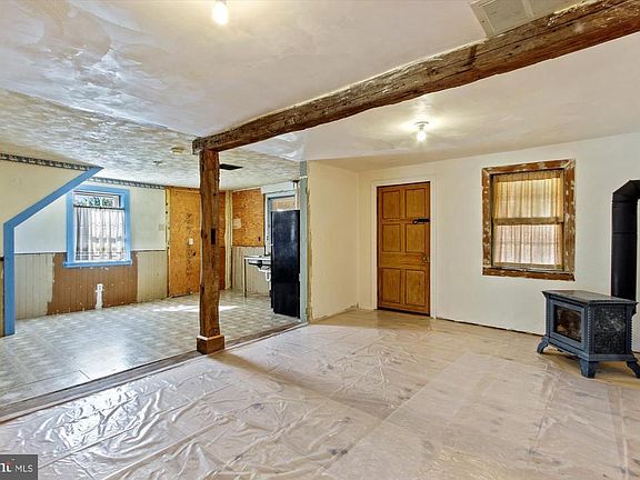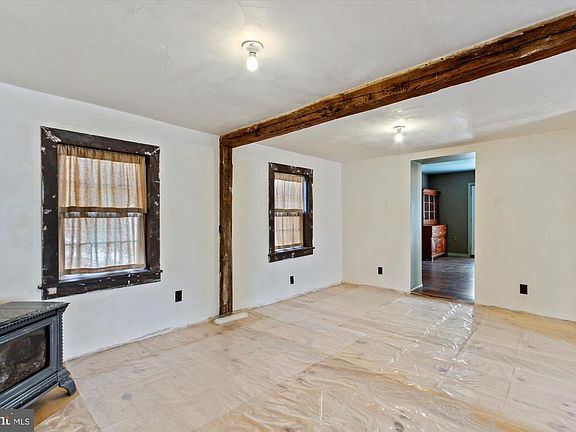 1817 LOG HOME! WHAT THIS HOME HAS SEEN! Sitting on 2+acres this covered log home has a beautifully laid out lot with woods along the back and a creek flowing through. Seller has worked hard with professionals and a period construction contractor on the unseen, functioning details of this home. He spent extra time and care in putting in items like a UV light for the well, sump pump with battery backup, and much more (check the Sellers disclosure for the details!). The 1st floor bedroom, bathroom (with Porcelain tiles), & laundry are very close to complete and stylish. The Livingroom floor has new planks laid down ready to be finished. The Kitchen is ready for you to design to fit your needs! Both easy operating gas heating stoves add to the atmosphere. There is electric baseboard on the 1st floor as well. The 2nd floor is prepped for the next steps. It has a spacious bathroom that still has the hook ups for a sink and bathtub/shower. The 3 other rooms are a landing area and 2 smaller bedrooms. (One bedroom's access is a walk-through from the other bedroom). Outside he has an oversized 2 car garage with a workshop in it. On the other side of the home is a building, that appears to be a small house without indoor plumbing, it does have electric! It is considered a shed in the records. This is an INCREDIBLE FIND!!! COME AND SEE!!