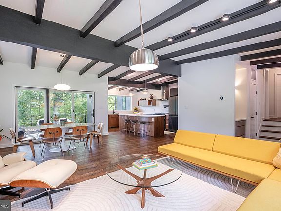 Mid-Century Modern Enthusiasts - Stunning one-of-a-kind mid-century modern home beautifully redesigned and expanded by MM Design Co in 2021. 4 Bedrooms / 4 Full Bathrooms / Spacious .38-Acre Lot. Blending new-construction feel with timeless mid-century modern design and high-end finishes. The home was taken down to the studs in 2021 before being added on to and completely redesigned. Main level open living and dining area with vaulted ceilings, exposed beams, stone wood-burning fireplace, oak hardwoods, an all-season skylit den, and a private covered deck. The centerpiece kitchen includes custom two-tone cabinetry, white quartz countertops, an 8.5 ft island, wraparound pantry, and black stainless appliances. Upstairs, find 3 bedrooms and 3 baths. Primary Suite features soaring ceilings, floor-to-ceiling windows, dual walk-in closets with Elfa custom closets, private laundry, and a spa bath with rain shower, freestanding tub, and custom walnut double vanity. The lower level offers a light-filled rec room with wet bar, a bedroom with large walk in shower full bath, home office with built-ins, second laundry, and walkout access to the backyard. Outside, enjoy a modern concrete front patio, striking mid-century rooflines, tongue-and-groove wood soffits, Hardi-panel siding + Nakamoto Frestry Shou Sugi Ban siding, and black-framed Andersen windows. Nearly everything was new from the 2021 addition and total remodel, including membrane roof, insulation, Anderson 400 series windows, HVAC, plumbing, main sewer line, electrical, drywall, designer fixtures, driveway, landscaping, and more.