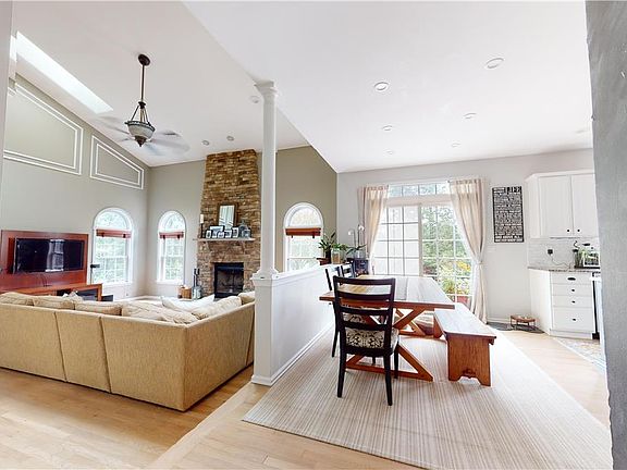 Located in Lehigh Valley’s desired Upper Saucon Township (Southern Lehigh School district), this beautiful center-hall Colonial features an open floorplan with beautiful refinished hardwood floors, custom crown molding, and upgraded trim. You’ll pass through the 2-story entrance foyer with chandelier into a spacious eat-in Kitchen with updated cabinets, large marble center island, granite countertops, and stainless-steel appliances; which transitions into the sunken Family Room with 18 ft cathedral ceilings, a wood burning fireplace, and rear staircase. There’s also a patio conveniently located off the Kitchen for entertaining. The 2nd floor features a spacious primary Bedroom with 12 ft ceilings, walk in closet and ensuite Bathroom, plus 3 additional Bedrooms and full bathroom. The finished basement features a Rec Room, Home Gym, and additional storage. Rounding out the house is a 3-car garage. In addition to plenty of parking in front, the backyard offers a place for peace & quiet by the Koi Pond. Other updates include a newer roof (2021) and reverse osmosis water treatment system. This house has it all; turn-key, move-in ready, and conveniently located near major highways, hospitals and shopping.