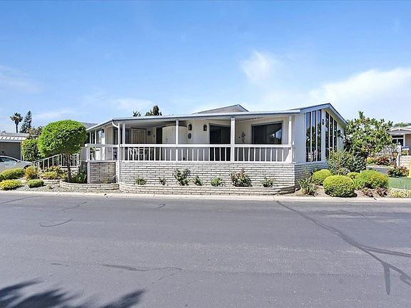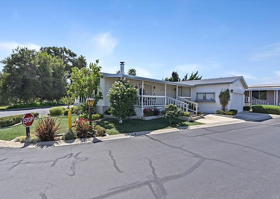 Views, views, views! This home's large great room has floor-to-ceiling windows offering views of the creek and sycamore trees. Enjoy the beautiful view from inside, or step out to two covered decks with views of the creek where you can watch the herons, ducks and other birds throughout the day. Situated on an oversized corner lot with a two-car garage and professionally landscaped low maintenance yard on an auto-drip sprinkler system. The home opens to a great room with high ceilings that combines the living, dining and kitchen areas. The living room features a stunning rock fireplace. The kitchen features plenty of storage cabinets & an oversized pantry. There is also a very large walk-in storage room with built-in shelves. The bedrooms are located on the back side of the home for maximum privacy. The oversized master suite has spacious cabinets, very large closets with a dual vanity, soaking tub and separate shower. It features an adjacent room with a pocket door divider, which makes a lovely sitting room/office area with views of the trees & landscaping. The second large bedroom opens to a bonus room with a door to the back patio. Rancho Carlsbad is a 55+ active, resident owned senior community where you are minutes away from the beach, shopping and fine dining. Enjoy the community, all the wonderful amenities and more than 30 different clubs to choose from in this guard-gated community. Truly a MUST SEE!