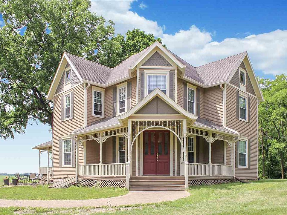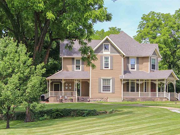Stunning historic home setting on nearly 4 acres & only minutes to town. A tastefully restored classic Queen Anne Victorian offers 5 bedrooms, 2.5 bathrooms, approximately 3360 sq ft, & is loaded with amenities. Interior amenities include a newer kitchen with granite counter tops, stainless steel appliances, & heated tile floors. Also, 2 fireplaces, hardwood floors, 9 ft ceilings, beautiful trim work, & the main bath has a dual vanity, tiled walk in shower & a jetted tub. The third level is a perfect kids game room or a man cave. The grounds offer a fully stocked pond, storage shed, & woods with paths running through them. A home with historic character & close town on acreage rarely come available. Call your realtor for a private tour!