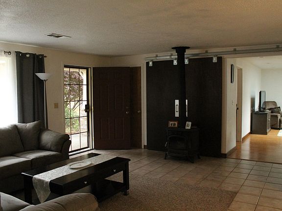 This is perfect for country living. on .77 Acres Home is freshly painted, has good sized living room with wood stove, barn doors to family room, updated kitchen with butcher block counters, tile back splash and farm sink, open to dinning area. The 3 bedrooms are at one end of house and and a bonus room with closet off family room at other end. 3 car garage with one with a pass through to back yard. Yard has a 10x10 garden shed with loft, fenced area for garden with raised planter boxes.