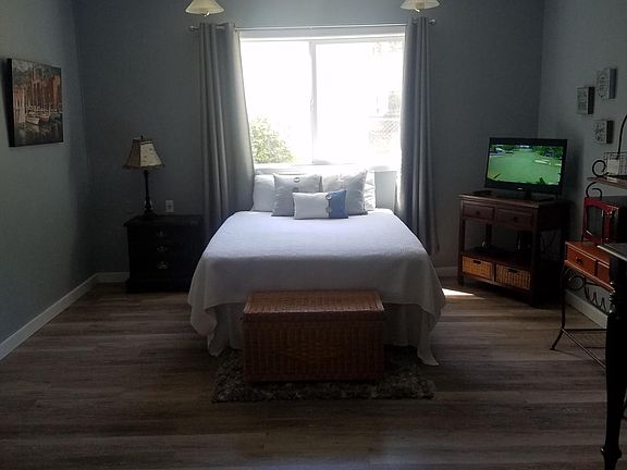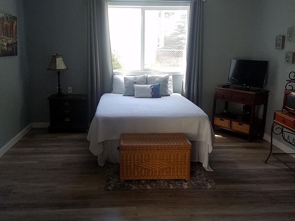 Newly remodeled and furnished studio apartment in Anacortes. Perfect for short term stay for work. All utilities paid for in rental amount. Rental is good-sized for a studio. Very spacious walk-in closet and office. Detached property so you don't have neighbors right next to you. Attached garage. No laundry onsite unfortunately. Would consider a cat or small dog with additional deposit. Thanks for looking! Utilities paid for. Landscaping included. Attached garage.