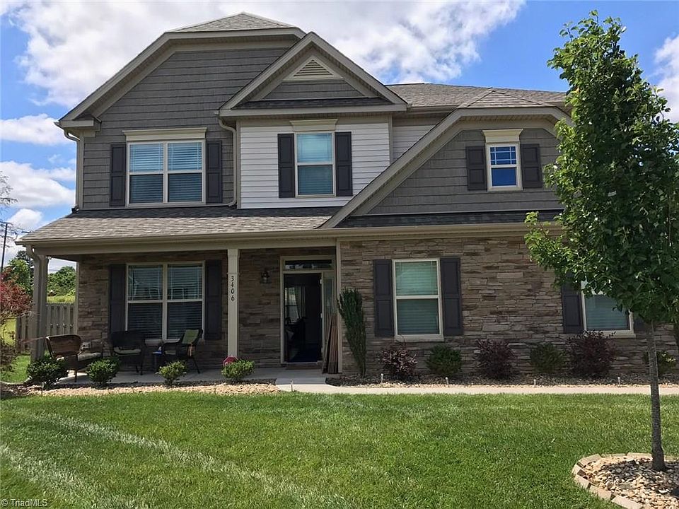 Front porch welcomes you. Beautiful entry with columns in d/r. Very open floor plan. Kit., breakfast and f/r for everyone to gather. Check on kids from kitchen window. 2 car side entry gar. Large flat yard w/fence, concrete slab with heat pump, 10KW generator(natural gas); Fiber(int. &TV) thru North State;2 zone thermo., energy effic.; whole house serge protector, custom sail shade over patio, above and below cabinet lighting. Elegant master bath. Flood light switch in Master. Home Warranty for 1st year.