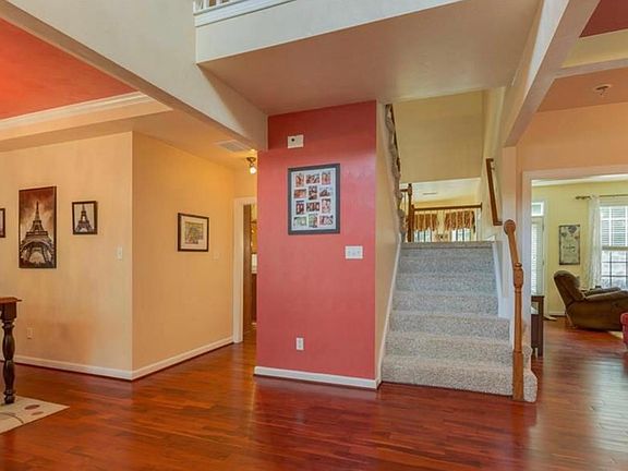 Beautiful home on quiet cul-de-sac in a great neighborhood. Elegant circular driveway, 2.5 car side-load garage, and large lot backing up to private wooded area. Grand entry with double front doors, whole home intercom, wired for surround in bonus room, spacious bedrooms, and master suite. Recent upgrades include stunning Brazillian cherry hardwood floors. Shed and play set.