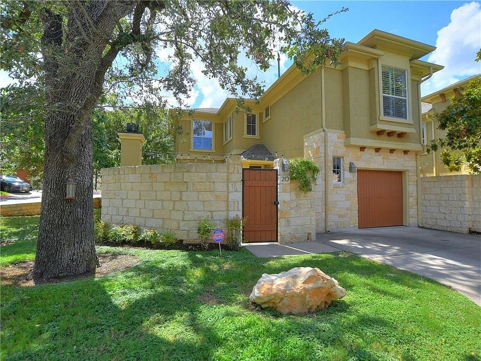BEAUTIFUL CORNER UNIT W/ ONLY 1 NEIGHBOR IN GATED COMMUNITY! Private fenced in yard w/ open patio & outdoor fireplace. Family room w/ wood floors, gas fireplace & abundance of natural light. Kitchen w/ granite counters, stainless steel appliances, recessed lighting & great cabinet space. Master w/ plantation shutters, walk-in closet, double vanity & walk-in shower. Bonuses: Gameroom & powder bath.Restrictions: Yes