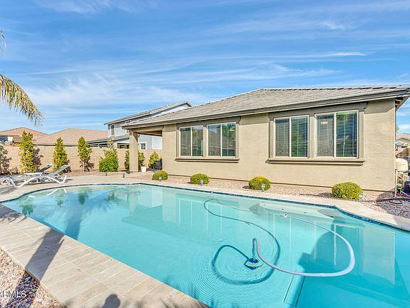 Welcome to a meticulously maintained 2017-built haven in a serene gated community, minutes from the 202 freeway. This modern gem boasts an open floorplan, granite countertops, 3 bedrooms plus a den, and is surrounded by captivating red mountains. The pristine interior is flooded with natural light, offering a seamless blend of comfort and luxury. Step outside to a resort-like oasis with a covered patio, travertine-paved pool area, and a pool with a heat pump so you can enjoy it for most of the year! Enjoy the convenience of quick freeway access and a short drive to the river. This home is a perfect balance of tranquility, elegance, and modern living. Welcome to Arizona paradise! Seller would prefer to sell all the furnishing with the home. Can be sold via separate bill of sale.