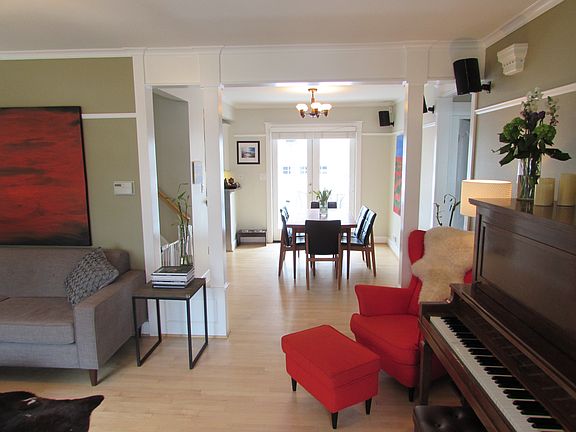 Detached ADU studio with bathroom and kitchenette located above two car garage. Modern, naturally well-lit studio apartment on NE 12th Avenue. Great Irvington neighborhood; walking distance to shops, restaurants, cafes and Whole Foods. Less than a minute walk to Line 8 and Line 24 bus stops. Exclusive use of washer/dryer located in garage under ADU. Closets within apartment, additional storage space available for bike/s, outdoor equipment etc. Owner pays for trash and sewer. Tenant pays for 20% of electricity (bill combined with main property).