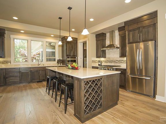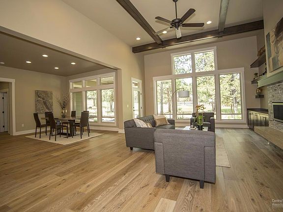 This executive home features luxury finishes including engineered hardwood floors, tall ceilings and light and bright great room style single level living. The gourmet kitchen features an expansive island with quartz countertops and high-grade stainless appliances. The spacious living room features a boxed beam ceiling, built-in cabinetry, shelves and a stunning stone tiled fireplace. A half bath and office are off the main entry. The master bedroom features a wall of windows, walk-in closet with built-ins, master bath with walk-in tiled shower and double vanity. Two bedrooms and a shared bath are on the other side of the home - one is set up as a guest bedroom and the other as a den with a sofabed and TV. The garage is accessed through a large laundry room with lots of storage and counter space.