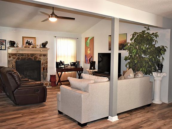Beautiful -Totally move in ready home!! This immaculately kept home is looking for a new owner! Walk into the foyer to the large living area with dining area included. A fireplace to relax and enjoy your evenings! New vinyl plank flooring throughout home. Nice efficient kitchen with lots of cabinets. New Dishwasher! Master Bedroom greets you with spacious room for your king size bed and barndoor leading to the bathroom! Bathroom features a double vanity and nice tub shower combo! Then walk into the SPACIOUS closet with shelves, shoe storage plus lots of hanging space. Both of the two bedrooms are good size and 2nd bathroom is perfect! Plus an extra large den to entertain, relax, enjoy the children - endless possibilities!! Venture outside to the screened in spacious porch! Then head outside which features- Gazebo with electricity for your TV to watch the games, firepit to roast your dinner and even a concrete basketball court! Privacy fenced large backyard completes the private atmosphere! 2 Great Storage Buildings. This home is for you!!