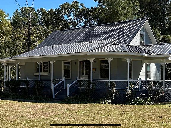 Investors Special! Country style home with metal roof and wrap around porch. Level lot. This house comes with a living room with fireplace, 2 bedrooms, and a kitchen with eat in area. The metal roof is just a few years old. Beautiful lot! This home would be a great starter home or investment property.