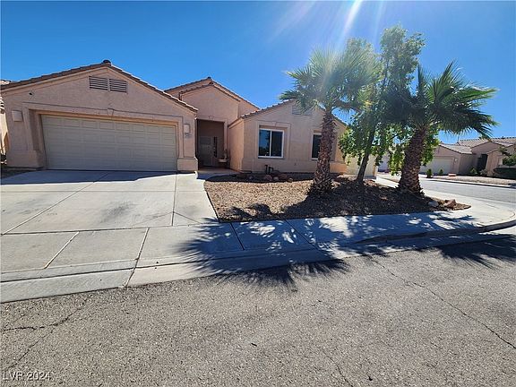 Appointment is needed. Welcome to a stunning single-story home in NLV!Boasting 3 spacious bedrooms. A 4th bedroom was made from the tandam garage with ac/heat. The primary bedroom is separated from the other2 bedrooms. Primary bedroom has soaker tub soaker tub & separate shower. The home has 2 full bathrooms.An open-concept features a bright, airy vaulted living space perfect for entertaining.Speaking of entertaining, a 65" with stereo& speakers stay.The kitchen is complete with modern appliances & ample counter space. Outside, relax in your own private pool, above-ground hot tub & PAID OFF solar panels that provide energy efficiency.  Again, solar is paid off. Originally the garage was a three car with 1 being tandem. The tandem was turned into a gem of an office space.  The 2-car garage offers plenty of storage, while the low-maintenance landscaping makes for easy living. The storage shed in the back yard will also stay. Ideal for everyone.