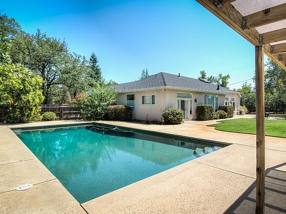 Beautiful and well maintained 4 bedroom home featuring vaulted ceilings with crown molding, a formal dining room plus a breakfast nook and eating bar. Spacious master suite with rear patio access. Master bath has double vanities, a jetted tub and a shower. Backyard focus is on the gorgeous inground Heated pool as well as the 1000 sf shop which sits at back of lot under large shade trees.