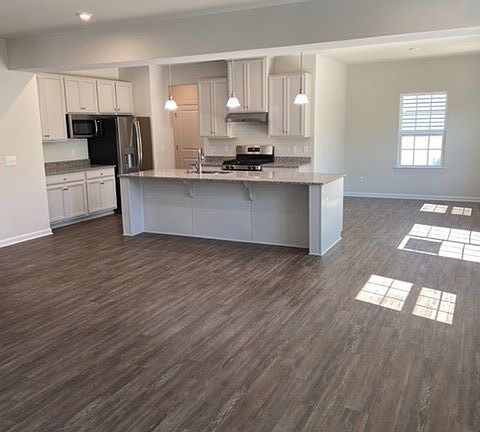 Columbia plan ON A BASEMENT!! (Unfinished 1150 sqft) HUGE 8x14 walk in closet in owner's suite Granite kitchen countertops, SS appliances, INCLUDING FRENCHDOOR FRIDGE! ceramic tile bath and laundry floors, tile surround shower in owner's luxury bath. Flex room, family room open to gourmet kitchen with 10ft island, LARGE pantry, NEST Thermostats, WIFI garage door opener. Tankless gas WH, ALL CLOSING PAID USING NVRM!