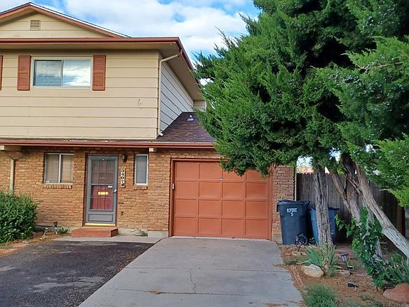 Enjoy this north-side townhome featuring 2 bedrooms, 1.5 bathrooms, and 1 car garage. The main level living room features a brick faced wood-burning fireplace. Main level laundry/mud room with furnace and hot water heater. The upper floor has bedrooms with a joint full bathroom. The master bedroom has its own separate sink/vanity. The front has a paved driveway for extra parking. The back yard is backing into an open space. The rear patio is covered. This townhome located within walking distance to Centennial High School, local shopping, various dining establishments, & just minutes from Highway 50 and I-25. Perfect for a starter home or for an investment.