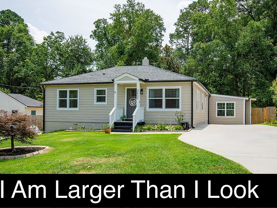 Welcome to a beautiful, renovated house nestled in the sought-after Meadowbrook Acres neighborhood in Decatur. This home boasts three spacious bedrooms, including a very large owner's suite with a bedroom sized walk-in closet and a luxurious spa bath, complete with a large shower and double vanity. The spacious open floor plan features a living room, dining room, generous kitchen and a family room. For added convenience, the home also features a laundry room equipped with a folding counter and sink, and a pass-through to the owner's suite bath. The home is perfect for roommates or working from home, with a great floor plan that ensures privacy and comfort. You'll love cooking in the newly renovated kitchen, adorned with walnut countertops, white cabinets, and nice appliances. Unwind in the bonus family room, which features a vaulted ceiling and a stylish bar. Extend your living space outdoors with a huge deck and huge fenced yard, perfect for entertaining or relaxing. Beautifully tiled baths, elegant landscaping, and a blend of old home charm with modern updates make this house truly special. The home is perfectly located near parks, schools, restaurants and has great highway access. Experience the best of Decatur living at 3407 Bennington Drive, where comfort, convenience, and charm meet. Come see this beautiful home on 7/22 3-5 pm while agent is on duty.