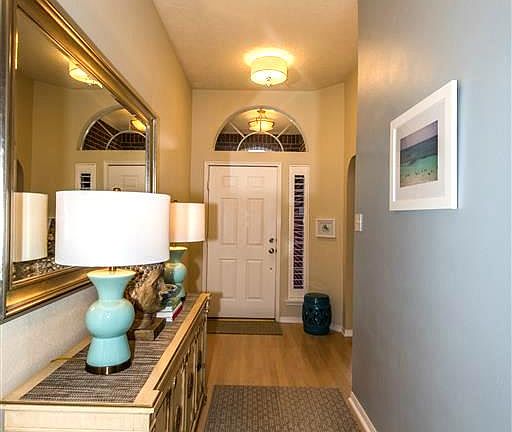 Loaded w/upgrades, this open concept home features a secondary bedroom that has been transformed into a study w/French doors. Engineered hardwood flooring & plantation shutters throughout. Kitchen w/large center island, custom cabinetry, granite countertops, glass tile backsplash & top-of-the-line stainless appliances. Elegant master has a 5-piece bath w/garden tub & his/her sinks. Beautifully landscaped yard w/plenty of patio space & climate-controlled storage shed that can be used as a studio.
