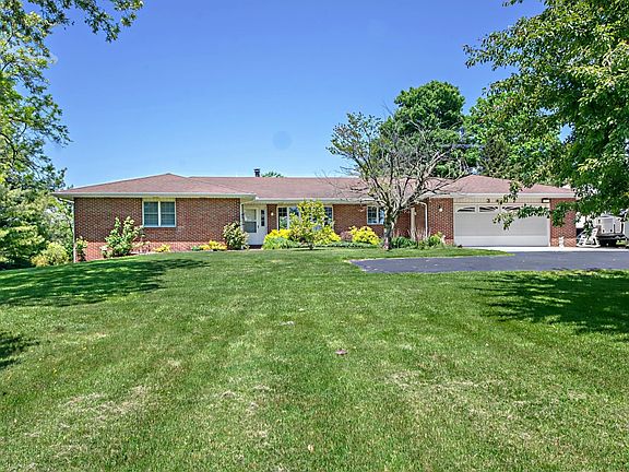 3 bedroom 3 bath brick ranch with walkout basement on 1.5 acres. This peaceful setting is surrounded by a cherry orchard and set back off the road. Beautiful flowering trees abound this lovely piece of heaven. Beautiful hardwood floors throughout most of the main floor. Main level laundry hook-up with additional laundry in the basement. Master suite with walk in closet. Heated and insulated garage. Large Eat-in Kitchen with cherry finish cabinets, granite countertops, walk in pantry and plenty of room for an island that can stay if buyer would like. Newer furnace. Just outside of town with fast convenient access to downtown or the bypass. Not far from the county fairgrounds.