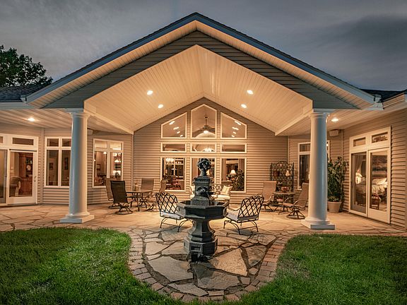 UNBELIEVABLE VIEWS and EXCEPTIONAL QUALITY throughout this stately RANCH STYLE (slab on grade) CUSTOM BUILT EXECUTIVE HOME. This home is SPACIOUS GRAND & INVITING with an abundance of windows overlooking the water and private treed area. You will fall in love and appreciate the OPEN FLOOR PLAN and beautifully designed one of a kind home. This home has 3573 sq ft including 3 bedrooms, office, 3 bathrooms, and a large 1232 sq ft 4 car garage including storage space in the loft. There is a 50 AMP in the garage. The home has 10 foot typical to 16 foot vault ceilings, geothermal heating and cooling system plus heated floors throughout home. The WOW factor as you enter the GRAND GREAT ROOM with a wall of built-ins surrounding gas fireplace and TV area, large windows overlooking beautiful back yard with New York Blue Stone on patio. The HUGE kitchen /dining area features granite countertops,gorgeous custom built toned and glazed maple cabinets, stainless steel appliances including dual ovens and wine frig, island with an extra sink and walk-in pantry. The luxurious MASTER SUITE is inviting with private sunroom, fireplace, his and her closets, dual sinks, walk in dual shower, jacuzzi tub and remember HEATED floors throughout home. This home has it all! Home is built higher than flood plain. Call a Realtor and book your private showing today for this one-of-a-kind dream home.