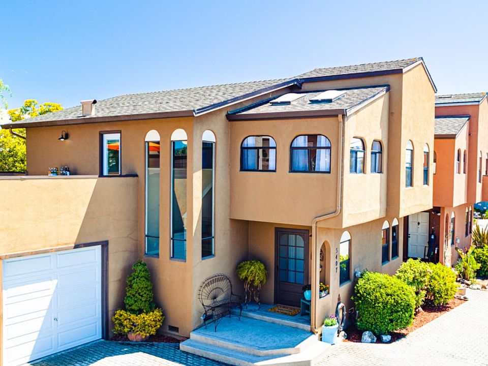 Stylish and Spacious Townhome in Central Santa Cruz. This townhome stands out with its single-family home feel and townhome price. It includes a 1-car garage and 4 designated outdoor parking spaces. The property has 3 bedrooms, 3 full baths, and 2 outdoor living areas. The lower patio has attractive landscaping and stamped concrete, while the upper deck provides a sunny private space for outdoor living. My favorite room is the tranquil primary bedroom suite featuring vaulted ceilings, skylights, ample windows, and delightful built-in window seats, shelving, and drawers. The primary bath includes a large tub, dual sink vanity and skylight. Recent updates include new bedroom carpeting, renovated downstairs bathroom & many new light fixtures. The home has low HOA fees in a small 3 unit complex, making it an affordable choice in Santa Cruz. It's conveniently located near 41st Avenue shopping, restaurants, beaches, and the freeway. Welcome home!