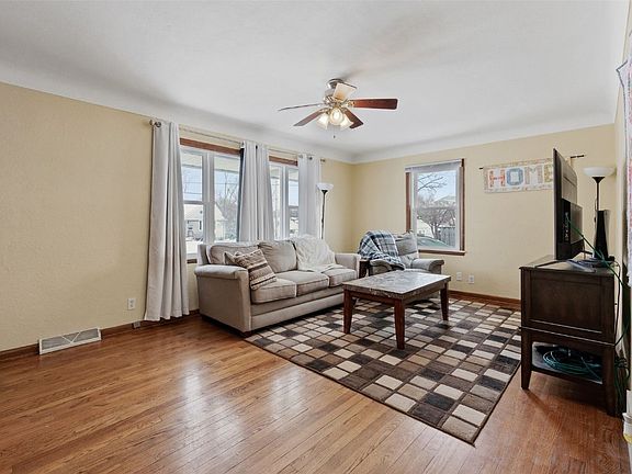 Charming 1½-Story Home with Modern Updates! Welcome home to this beautifully maintained 4-bedroom, 2-bath property that blends classic charm with modern convenience. Step inside to find an updated kitchen and bathrooms, gleaming hardwood floors, and a newer roof, furnace and AC for added peace of mind. Relax and unwind in the bright sun porch, perfect for morning coffee or evening downtime. Outside, enjoy a fenced backyard—ideal for pets, play, or gardening. The home also features a spacious 2-stall garage for extra storage and convenience. Move-in ready and full of character, this home is truly a must-see!