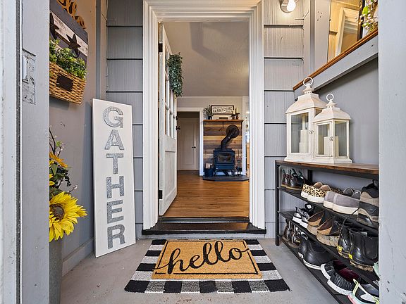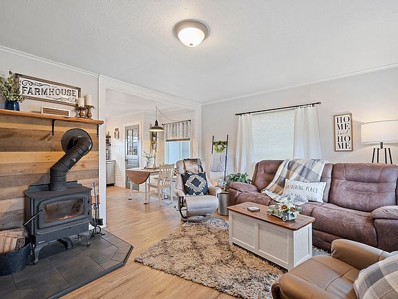 Cozy 3 bed 1 bath home with farmhouse chic feel has many updates throughout! Close to schools & downtown! New flooring, kitchen cabinets, subway tile backsplash, ship lab walls, wood stove, hearth & built-in dining bench with storage and more! Upstairs of home boasts ample storage and third bedroom! Fully fenced back yard & woodshed is ready for all your summer projects! Schedule your showing today!