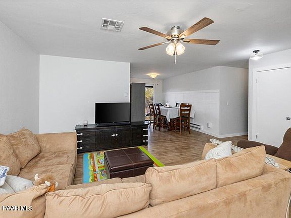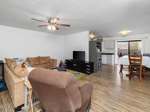 Really clean, pleasant home in Prescott Valley with 3 bedrooms, two full baths, spacious living room, great kitchen and laundry room. Dining area is off the kitchen. No carpet in any room of the home. All electric home with central air. It has a 2 car attached garage and large fenced backyard with shade. Located across from a park. Conventional septic system and city water. Paved city streets with no HOA. Roof is only a few months old. House is in excellent condition and ready to sell.