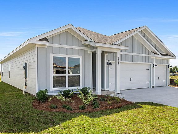 The Madison is one of our many featured one-story homes at the beautiful Hodges Bayou Plantation community. When you walk into the home, you are greeted by a long hallway that is the center point for bedrooms, the laundry room and garage, and leads to the open living room and kitchen. Beautiful, engineered vinyl plank (EVP) flooring lines the main areas of the house and soft carpet covers the bedrooms. The bedroom closest to the garage also comes with its own bathroom, not shared in the main hallway. The bathrooms have beautiful white quartz countertops and white cabinets that enhance the beauty of this home. Entering the kitchen and living room area, you will notice plenty of natural sunlight illuminating the main area. The living room has tray ceilings that open the room, making your living space feel much more comfortable. The kitchen has stainless steel appliances and comes with beautiful white cabinets. The large island has plenty of storage in it and every surface has elegant white quarts countertops. The dining area is located by the back door leading to the covered rear patio. Walking into the large primary bedroom, you will also see tray ceilings and three windows that wash the room in natural sunlight. The primary bathroom has a spacious double vanity with white quartz countertops and white cabinetry. The walk-in closet is in the bathroom as well, perfect for when you get out of the separate tub or shower with glass doors. Appreciate the convenience of a Smart Home technology package, featuring keyless entry and an intuitive control panel for your thermostat, lighting, and security systems. The exterior of this home features Hardie Color Plus Siding and is uniquely engineered to stand up to the harshest elements from wind, rain, fire, freezing temperatures, and hail. Dimensional shingles with 30-year warranty. A landscaped front flower bed at entry way and fully sodded yard. Our Hodges Bayou community features underground utilities making it less susceptible to damage from severe weather leading to fewer outages and more reliable service. Come see why the Madison is a favorite choice among buyers. Schedule an appointment today to see for yourself and find your next home at Hodges Bayou Plantation!