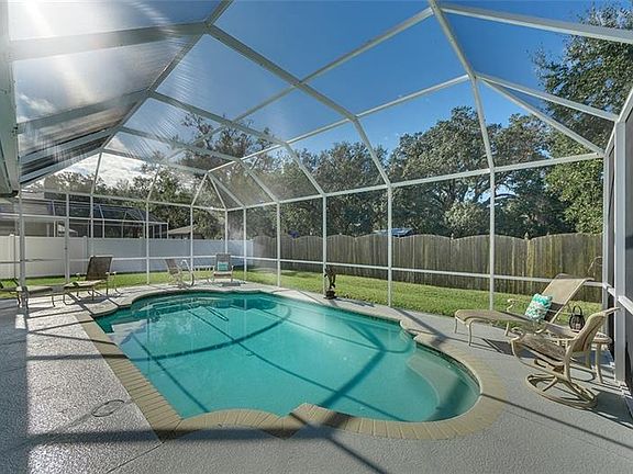 Chip and Joanna inspired decor and renovations! This home offers a fabulous floor plan with a light and open interior. 3 bedrooms , 2 bathrooms and a den make up this practical square footage. The living room is complete with gorgeous stained concrete flooring and sliding glass doors that provides a seamless integration between the indoor & outdoor areas. The focal point of the room will make you say "Holy, SHIPLAP" . The welcoming kitchen bestows; gorgeous quartz counter tops, trendy whit cabinetry, a stainless steel sink with a touchless LED lighted faucet, stylish backsplash and newly added pendant lighting. New roof is being installed December 20th, 2017 and pool cage is being re-screened as well!? Other noteworthy updates include: New pool pump 2016, Pool Resurfaced 2016? River Woods offers a community pool, recreation building complete with a fitness room and tennis courts, which are all walking distance from the house!? Close to I75, US HWY 301 N and the newly added Fort Hamer Bridge makes commuting North or South very ideal.