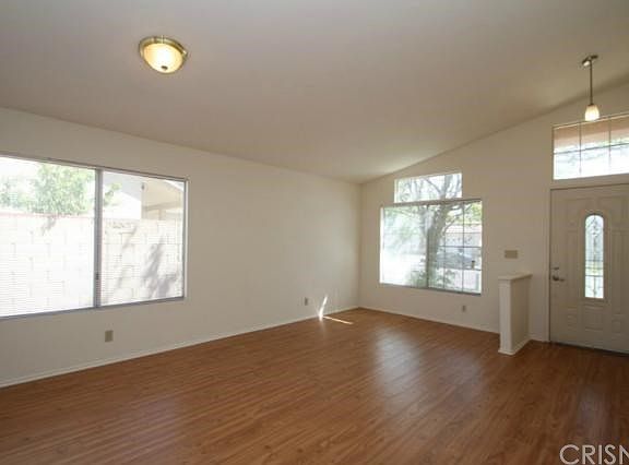 Wonderful 4 bedroom, 2 bathroom home on an over 7,000 SF lot in Rosamond. This one story home features brand new wood floors and carpet all throughout, is freshly painted and ready to move in! The living room has high ceilings and lots of windows to provide ample amount of natural light. The open space kitchen and family room is the perfect space for gatherings. The kitchen has new corian countertops and the cabinets have been redone with lots of storage space! Stepping out to the back yard, you have a partially covered patio area and lots of yard space! The large master suite has high ceilings and access to the back yard. The master bath has a double vanity along with a shower over tub. The second bath also has a shower over tub.