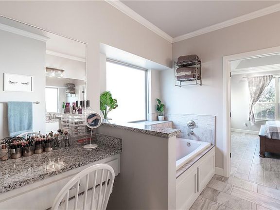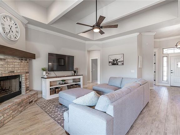 This beautiful 3/4 acre wooded lot welcomes you with amazing curb appeal! Step inside into the elegant entry space with the dedicated study just to your right. The breathtaking living room showcases a cozy corner fireplace with stained wood mantle and several windows allowing natural light to flood the room. The living room is open to the kitchen and adjoining dining room. The chefs kitchen features painted cabinetry, tons of storage space, 5 burner gas cooktop and builtin oven, designer patterned backsplash, a spacious island with sink, and dining area offering access to the covered patio, making it perfect for entertaining. The primary bedroom is complete with a private en-suite including a double vanity, soaking tub, separate shower, and a generous walk-in closet. Additional living area upstairs makes for a perfect game room! Relax and unwind in the sprawling backyard under the covered patio with a fireplace! The 3-car oversized garages are an added bonus on this fantastic home.