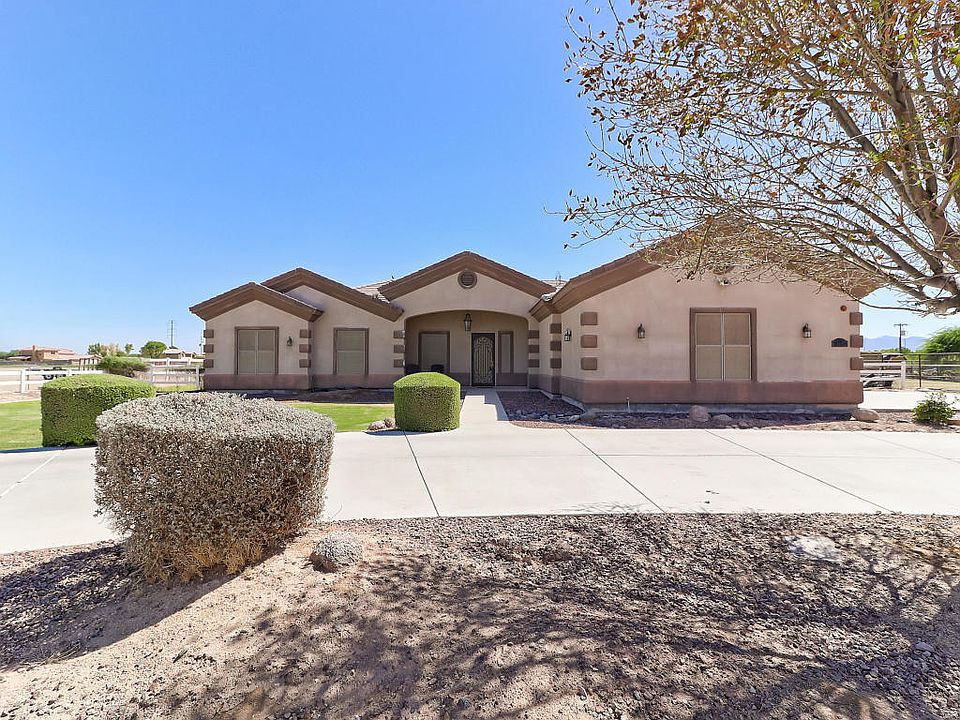Great 4bd 3ba 3 car oversized garage custom home on an irrigated acre. Surrounded with white vinyl fencing.RV gate and Parking.Home has brand new cabinets and wood floors.Granite counter tops thru out. Upgrade carpet. custom paint.3 new Elongated toilet. Lots of storage, Great room with entertainment center, bay window in Kitchen, full length covered patio. Playground set, verify all measurements and info.