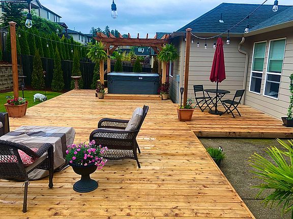 Stunning home with all the bells and whistles. High ceilings, engineered floors, & natural light from tall windows. Open concept w/ formal dining, office, & bonus. Gourmet Kitchen w/ quartz, high-end appliances, butler pantry, & large island. Great room w/ coved ceilings custom cabinetry & gas fireplace. Large master suite w/ jetted soaking tub, dual vanities, & walk-in closet. Amazing man cave off garage with just under 300 sq feet of private room space. Over 600 sq foot custom deck and pergola with brand new hot tub to complete this backyard paradise.