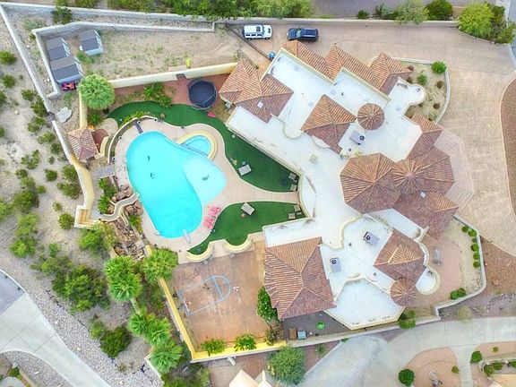 From the high-tech media room w/surround sound & built in movie screen, to the lagoon-style pool w/a built in waterslide, diving board & private cabana, this elegant home is perfect for entertaining & resort-style living! This outdoor oasis also inc: large wrap around covered patio w/outdoor kitchen, surround sound, cozy fireplace, lots of seating areas & basketball court all accented by a green synthetic lawn. This elegant home w/Venetian plaster walls, pillars & ceilings, boasts 4 bdms each w/its own bathroom, office/extra bedroom, parlor, formal living room w/vaulted ceilings, fireplace & rich hardwood floors, spacious kitchen w/granite counter tops & island, 2 dining areas, guest bathrm & 37' x 39' game room w/wet bar & bathrm. Interior features inc: lighted nichos, plantation shutters & beautiful wood kitchen cabinetry(inc: frig front). The luxurious master suite inc: a fireplace, gym area w/bay windows, dressing area shower for two w/a rain can & body sprays, plus steam shower