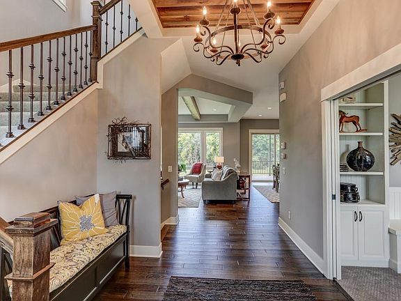 Designed for function and entertaining, this home has family living areas on each floor. Included are enameled kitchen cabinets with stained knotty alder island, with professional series appliances, including separate fridge and freezer. 10 foot ceilings on main floor are highlighted by the beamed ceilings in great room and wood detail on ceiling detail at the front entry. Open floor plan is delightfully bright and inviting. Great curb appeal with split garage. See photos for more inclusions.