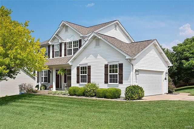 Welcome home to this updated and well maintained 2 story home located on a cul de sac in the highly desirable Stable Ridge Subdivision in Orchard Farm School District! Upon entering through the entry foyer, you are greeted by a formal dining room and office on either side. The family room features hardwood floors, gas fireplace, bay windows, and opens to the eat-in kitchen w/ breakfast room, breakfast bar, granite counter tops, and SS appliances. Upstairs, you will find three nice size bedrooms and a full hall bath. The primary bedroom ensuite has vaulted ceilings, walk-in closet, and full bathroom w/ dual sinks and separate tub and shower. The finished WALK-OUT LL features a rec room, new laminate flooring, a full bathroom, and sleeping area/bonus room. The backyard is nice sized and features a deck and patio area w/ built-in firepit. Located near hwys 370 and 70, this home is near shopping, restaurants, and everything St. Charles has to offer!