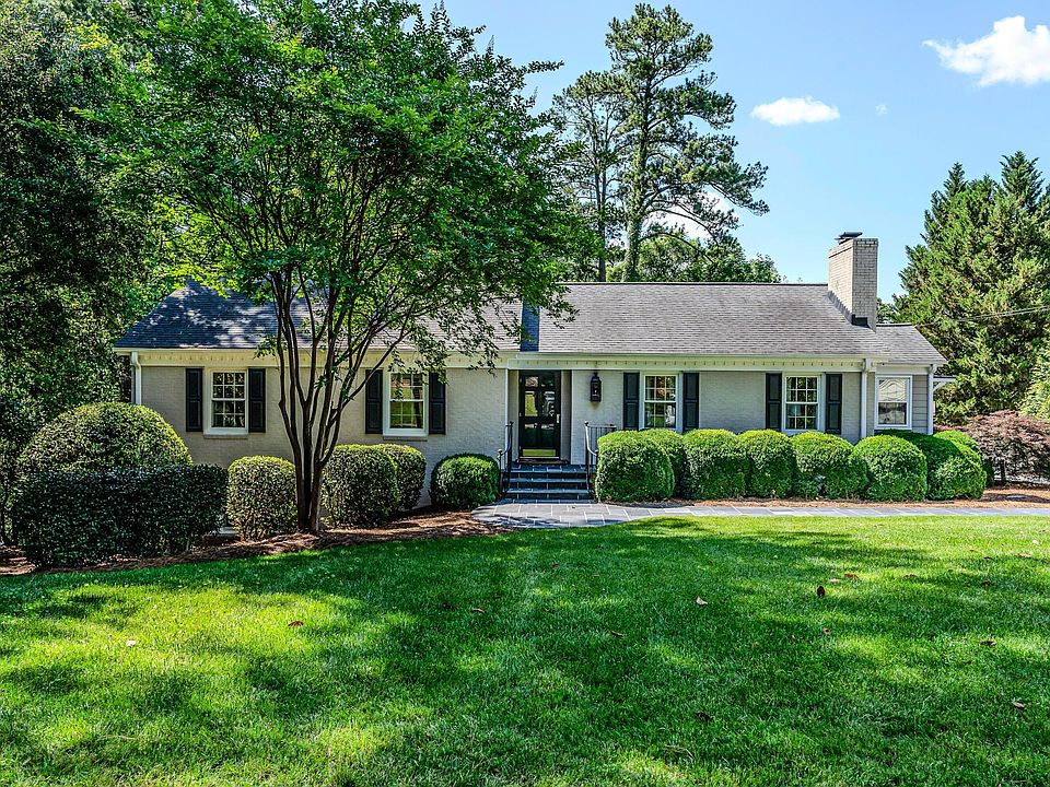 This stunning Drewry Hills ranch has been tastefully renovated with the finest finishes, featuring a thoughtfully designed floor plan, meticulously maintained landscaping, and a large backyard. The living areas are open and spacious, and the home includes a true first-floor primary suite. A sun-filled side entrance doubles as a mudroom and office, and there are multiple outdoor living spaces on a beautifully landscaped nearly half-acre lot. The home sits less than a mile walk to North Hills/Midtown shopping center, Kiwanis Park, and access to the Raleigh Greenway. Additional spaces like a walk out porch with Trex decking, a sunroom, basement bonus room, and a covered ground-level patio offer a chance to live on your terms and entertain with ease. Details such as gas carriage lights, high-end hardware on doors and cabinets, a built-in SubZero refrigerator, and designer light fixtures enhance this impeccably maintained home, which offers a blend of elegance and functionality in a desirable neighborhood.