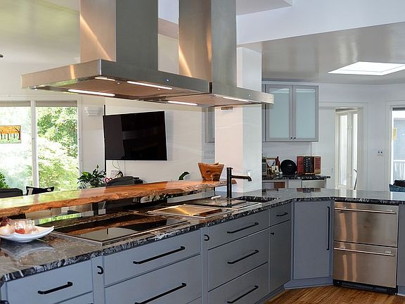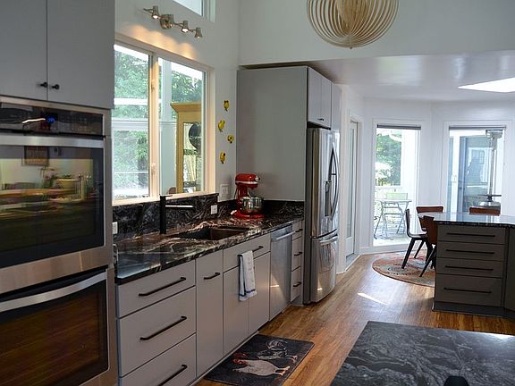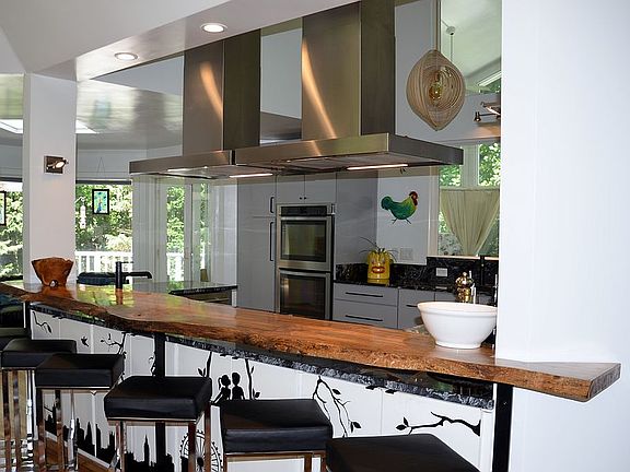 Recently (2018 finished) renovated kitchen to be a truly, one-of-a-kind chef's kitchen with everything you could possibly want. Easy to cook in if there is just one of you but designed for multiple chefs. Before and after pictures included but don't do justice to all that has been done. Unique, beautiful, hidden gem combines the best of city life and country living! Walk a mile to Lake Boone restaurants/Bottle Revolution/Randy's Pizza or walk a mile to Starbucks/Bella Monica/Harris Teeter/Edward's Mill Grill. Or hike through your backyard to the 48-acre Laurel Hills park complete with fishing pond, newly renovated playground, basketball courts, baseball fields, etc. Incredibly quiet and private yet close to the NC Museum of Art, Umstead, Rex Hospital, Crabtree Valley Mall, I-40, I-70, and much more. Open and light contemporary with a bonus high-ceilinged one-bedroom basement efficiency/apartment/home office/in law suite. The well-designed master suite boasts a sitting room/office and his/her full baths, laundry, and giant walk-in-closet. A porte-cochere (covered parking) is a plus you didn't realize you wanted until you have one. You will love this home!