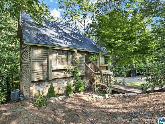 Looking for the unusual right in the middle of Hoover? This one is like a mountain chalet with entire backside over-looking woods and Hurricane Creek. Main level offers living space with stone wood burning fireplace that is open to bright kitchen with large island. Large glass room across back of home that can be used in many ways has new wood flooring. Big main level master bedroom with big walk-in closet. Updated master bathroom and there is a main level laundry. Upstairs feature big den, two additional bedrooms and updated bathroom. On the basement level there is space with separate entrance that could be used for in-law suite or possible rental income. This area has room for a bedroom, 2nd laundry room, kitchen area and full bathroom. Home also has spacious 2 car garage and large storage area. Owners had roof replaced in April of 2018. There's a small green house and space for chickens too. Home is located just minutes to Gwin and Simmons schools and minutes to shopping.