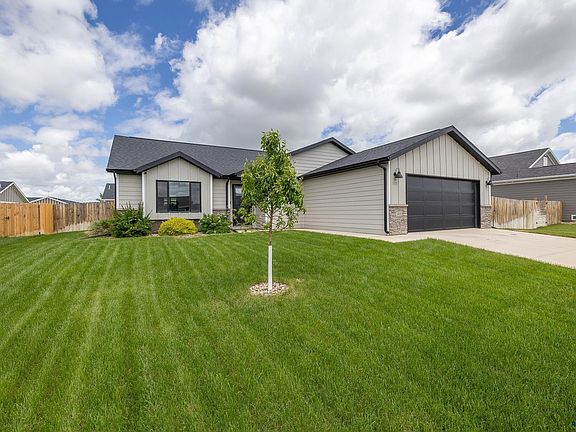 Welcome to effortless living in this beautifully maintained 3-bedroom, 2-bathroom ranch-style home, built in 2020 with attention to detail and style. Designed for low-maintenance, single-level living, this home features upgraded LVT flooring throughout and a spacious open-concept layout ideal for both relaxing and entertaining. The kitchen boasts a large pantry, perfect for storage and organization, while the living room invites comfort with a cozy window seat and abundant natural light. The master suite offers a serene retreat with a trayed ceiling, a large walk-in closet, and a luxurious en suite bath complete with a tiled walk-in shower. Additional highlights include a heated 2-car garage, timber accents in the gables adding rustic charm, and a fully enclosed backyard with lush sod, a sprinkler system, and a privacy fence - perfect for pets, kids, or quiet evenings outdoors. Situated in a newer neighborhood with convenient access to all that Rapid City has to offer, this move-in ready gem blends comfort, function, and modern style in one perfect package. Don't miss your opportunity to call this beautiful home yours!