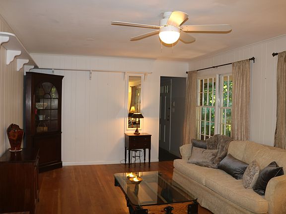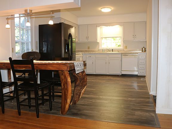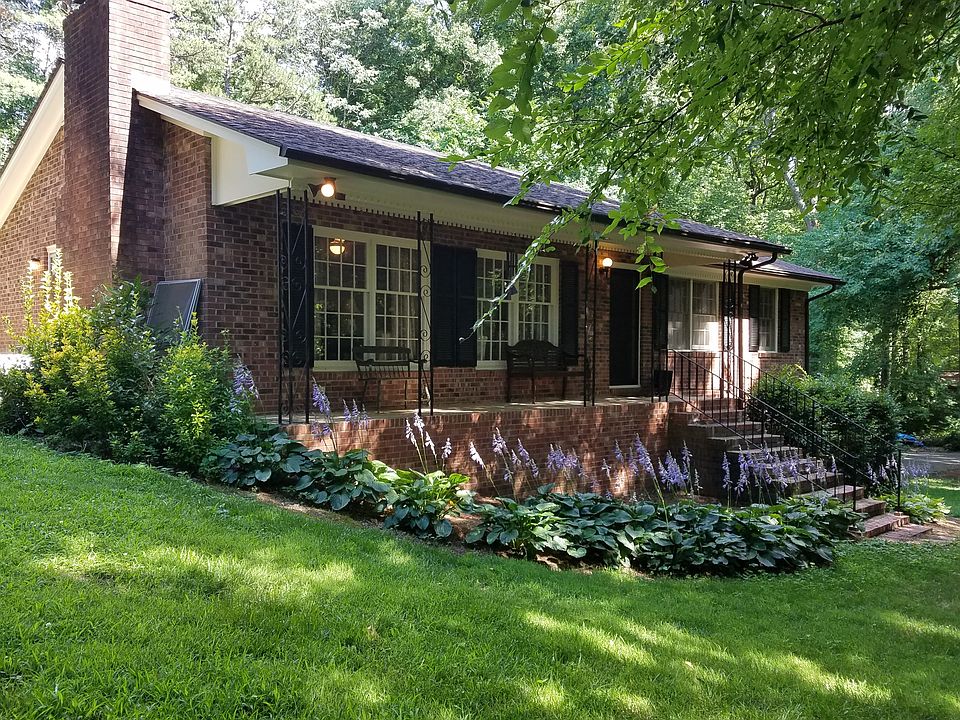 All Brick with large covered "rocking chair" front porch. Large private 1.32 acre double lot, wooded with stream. Freshly painted inside and out. 4 bedrooms (could have 5th in basement) and 3 full baths. Living room has fireplace with brick hearth. Updated Kitchen opens to living room. Cement patio just off kitchen. Newly renovated baths on main floor. Wood floors throughout most of the main floor. Partially finished basement with brick fireplace (room for family room and 5th bedroom, with the 3rd full bath). 1 car garage . Workshop. Separate 11x16 Dutch barn storage shed. Garden area. Newly recoated asphalt drive. Most rooms remodeled in 2018. Partially finished basement could be made into in-laws suite/separate apartment. New exterior paint 2018 (total paint and remodel $18,000).