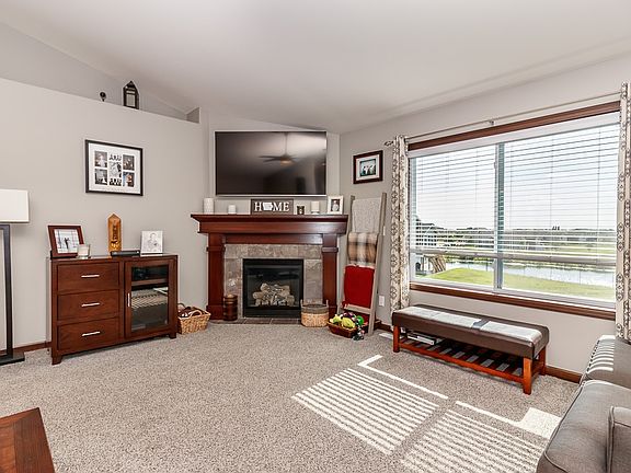 This beautiful ranch is located in a family-friendly neighborhood, on a quiet street, close to Butterfield Park, Hand in Hand, Lutheran Church, Indian Creek Elementary, Marion Hy-Vee, Marion Pool. The main level has carpet, hardwood, tile and vinyl floors, vaulted ceiling, an office/study, formal dining room, and features a fireplace. Also on the main level are 3 bedrooms, 2 full baths and laundry. The kitchen features hardwood floors, quartz counters, tiled backsplash, stainless steel appliances, pantry and breakfast bar. Appliances stay with the home. The master bedroom is located on the main level and features carpet floors, vaulted ceiling and walk-in closet. The attached master bath includes tile floors, quartz counters and one piece shower. The partially finished walkout lower level features a theater room, full bath and workout area. Outside you'll find a treated wood deck, porch and patio overlooking the yard with chain link fence and a great sunset view.